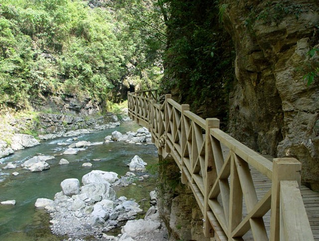 南江大峽谷的棧道總長2公里,它復(fù)原了古老的奇跡,突破了空間的阻隔,使游人在有驚無險(xiǎn)中飽餐原汁原味的峽谷風(fēng)光,洗滌心靈。