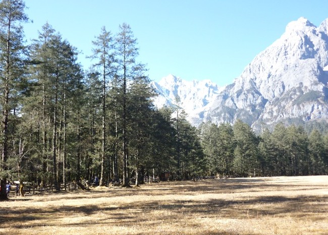 云杉坪,土語(yǔ)稱“游午閣”即“情死之地”又名錦繡谷,海拔3240米,是一塊隱藏在原始云杉林中的巨大草坪。位于玉龍雪山東麓的山箐里,在雪山主峰的右下方。