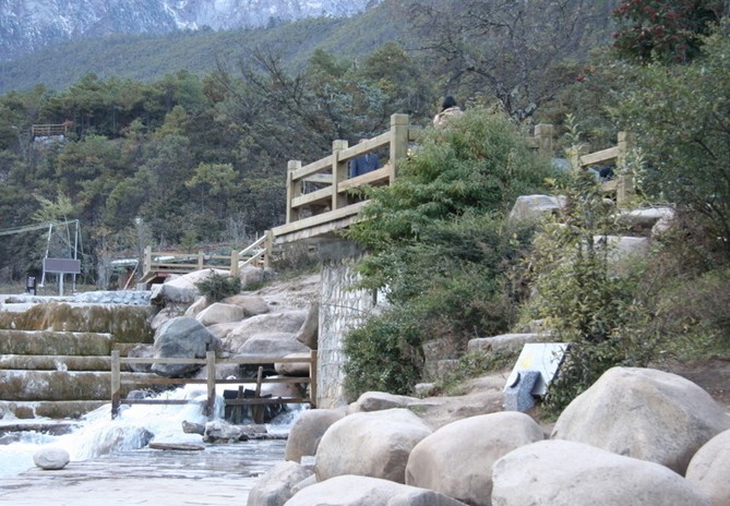 從古城前往云杉坪可乘7路中巴車直達(dá);也可以走棧道至云杉坪,或乘坐纜車。