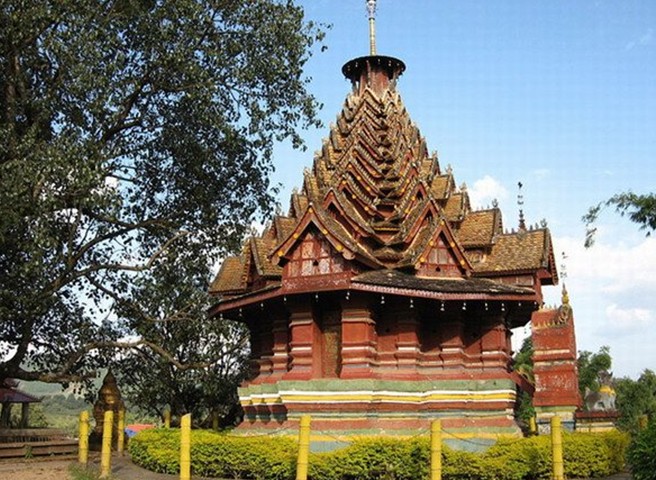 西雙版納景真八角亭位于景洪以西14公里,地處勐海縣景真山上,亭子因山而得名,是西雙版納的重要文物之一,建于公元1701年。西雙版納景真八角亭為磚木結(jié)構(gòu),呈八角形,亭身有31個(gè)斜面,鑲嵌彩色玻璃,并用金銀粉印出各種花卉、動(dòng)物、人物圖案,在陽光的照射下,光彩奪目。