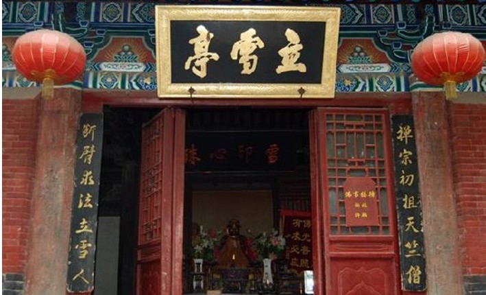 創(chuàng)建于北宋宣和七年(公元1125年),歷代每有修葺,主要構(gòu)件仍為北宋原物。它是河南省現(xiàn)在最古老的一座木石結(jié)構(gòu)建筑,在建筑學(xué)術(shù)上具極高價(jià)值。殿門(mén)有磚雕對(duì)聯(lián):“在西天二十八祖,過(guò)東土初開(kāi)少林。”殿內(nèi)供達(dá)摩像,并二祖慧可、三祖僧粲、四祖道信、五祖弘忍。