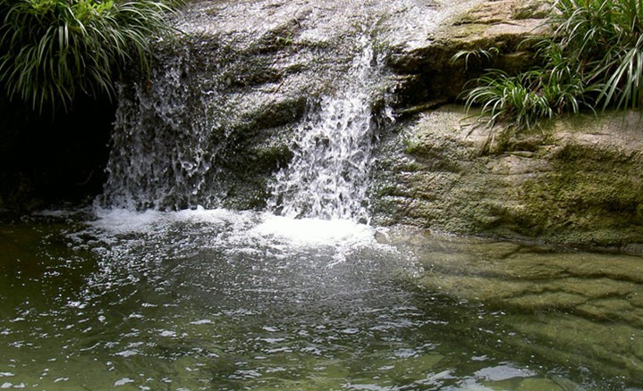 在椎?;ㄖ鶅蓚?cè)不遠(yuǎn)處有一天然石門(mén),高350多米,人曰“玉泉門(mén)”。玉泉門(mén)左右絕壁千仞,絕壁上多生青松、灌木,石門(mén)由距今五六億年前的巨巖構(gòu)成。巖壁陡峭如峭,兩扇石門(mén)恰似半開(kāi)半掩的門(mén)扇,清爽的山風(fēng)直從石門(mén)里吹出來(lái),給人送來(lái)一陣涼意。誰(shuí)若在這靜謐的幽谷中大喊一聲,空曠的峽谷便久久地蕩起悠悠的回音。抬頭仰望,巨壁夾天,大有巖山壓境之勢(shì),令人驚恐。真是“峰與天相連,人在窯中行”??!玉泉門(mén)為深淵奇峽,淵谷很窄,僅十余米,宛如古關(guān)隘。清澈的玉泉溪從這關(guān)隘巖門(mén)中擠石而出,滑下石級(jí),叮咚之聲,如撥琴弦。在玉泉門(mén)內(nèi)藏著一汪潭池,潭邊巖石上布滿(mǎn)絨絨的絲苔,經(jīng)水浸潤(rùn),綠得晶亮,象孔雀綠羽。潭水也著碧綠色,如同一顆綠珠、一塊翡翠。進(jìn)入玉泉門(mén),版權(quán)所有山東聊城聊之旅國(guó)際旅行社有限公司,轉(zhuǎn)載必究!然明朗,別有洞天。溯玉泉溪而上,兩岸巧石寄花應(yīng)有盡有,一步一景,美不勝收