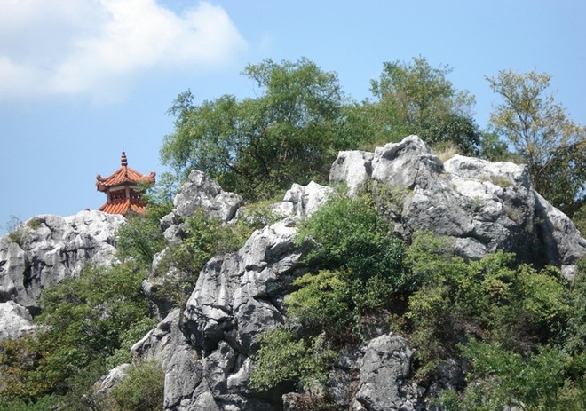 石林位于溶洞山頂,是古生代地殼變動而形成,距今有3億多年,面積1000余畝。 山上怪石嶙峋,奇花異草點綴其間,相依叢生,風(fēng)光明媚。有桃花谷、松漠亭、達(dá)開峰、藤穿石、象鼻石、強盜床、雙龍戲珠、騎虎難下、八戒戲嫦娥等景觀。景點林濤如潮、林谷如云,讓你猶如步入仙境般的身臨其境。千畝如詩如畫的石林中古樹名木遍布,珍禽異獸出沒,野花遍地開,小鳥林中鳴,置身其中,如至夢幻中,以奇石、奇樹、奇藤、奇峰著稱。奇石:造型奇特、惟妙惟肖,有形狀似白兔、鯨魚、山羊、山猴、野豬、蛇、大象、龍等動物,這里石石皆景,景景不同。奇樹:古樹盤踞、丹桂叢聚、翠竹搖拽,與奇石緊緊摟抱。奇藤:千年古藤、環(huán)石纏繞,藤纏樹、樹纏藤。奇峰:青山幽谷,流水叮咚,這里有強盜峰、松漠亭、獨秀谷、情人谷、幽情谷、南星巖、神寶峰、獅嘯峰、珍珠巖等。攀上光明頂,極目遠(yuǎn)眺,那蒼蒼茫茫的林海,時隱時現(xiàn)的群峰,風(fēng)光明媚的田園風(fēng)光盡收眼底。置身于此,如到了世外仙境之中,令您流連忘返。