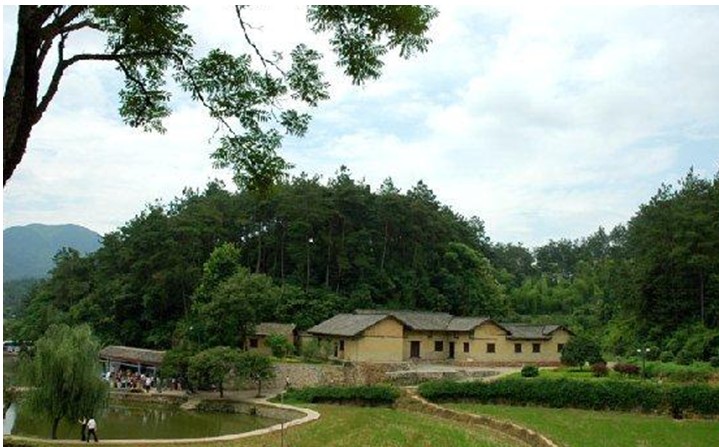 故居前有一口畝地左右的池塘,塘中有荷花,故又叫荷花塘,與之相毗鄰的是南岸塘。荷花塘與南岸塘綠水瑩瑩,風(fēng)過處,蕩起縷縷漣漪。放眼青山,綠水、蒼松和翠竹把這棟普通農(nóng)舍映襯得生氣盎然。
