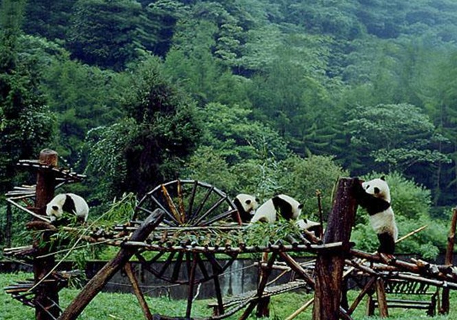 臥龍國家自然保護(hù)區(qū)位于中國四川省汶川縣西南部,邛崍山脈東翼。最高峰為西南的四姑娘山,海拔6250米,附近高于5000米的山峰有101座。群山環(huán)抱,地勢從西南向東北傾斜 ,溪流眾多。年均溫8.9℃,最高溫度29.2℃,最低溫度-8.5℃,年降水量931毫米。原始森林茂密,處四川盆地與青藏高原過渡帶,從亞熱帶到溫帶、寒帶的生物均有分布。海拔1600米以下為常綠闊葉林;1600~2000米為常綠落葉闊葉混交林帶,常綠樹有螢青岡、印葉釣樟,落葉樹有水青樹、山毛櫸、槭等;2000~2600米為針闊混交林,以鐵杉為主,其次為垂枝云杉、四川紅杉、槭、椴等;2600~3600米為亞高山針葉林帶,以岷江冷杉為主,林下有大面積箭竹;3500米以上為高山草甸和灌叢。不同類型的植被為多種動物提供了棲息場所。1963年建立自然保護(hù)區(qū)。面積2萬公頃 。1980年與世界野生動物基金會合作在臥龍建立中國保護(hù)大熊貓研究中心。1983年加入國際“人與生物圈計(jì)劃”。主要保護(hù)對象是大熊貓等珍稀動物及森林生態(tài)系統(tǒng)。