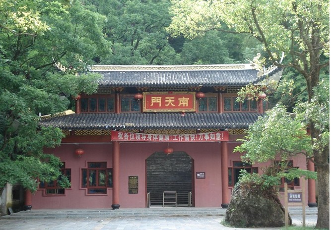 在怪石簇擁的錦繡谷中,有一塊巨石,懸空伸出,宛如懸在凌空中的一座橋,人稱“天橋”。相傳朱元璋與陳友諒大戰(zhàn)鄱陽湖時,敗逃至此,在前臨深壑,后有追兵的緊急關頭,忽然從天降下一條金龍,橫臥在深壑之上,化為一石橋,待朱元璋縱馬過橋后,頓時烏云滾滾,雷聲隆隆,天昏地暗,只見一道灼眼的藍光將石橋擊斷。橋斷后,云散日出,一切又恢復了原來的面貌,仍然是雙崖對峙的絕澗。這當然是神話傳說,其實這里原來是一處巨大的斷層,峰高壑深,峭壁連片,山崖上有一塊褐色巨石伸向深澗,遠遠望去似一斷橋。大自然界的鬼斧神工與美麗動人的傳說,相映生輝,將游人帶入了神奇的境界。