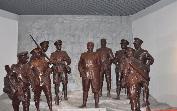 中國人民解放軍軍事博物館美術(shù)設(shè)計處的設(shè)計師張飆說,為使人物的表情更加生動,全體創(chuàng)作人員都到部隊去體驗生活達20多天,與戰(zhàn)士們同吃同住,捕捉他們的神情,這12個人物雕像都有軍人的原型,最后才有了這一經(jīng)典之作。