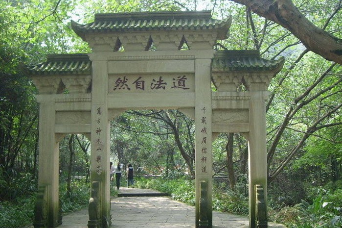 以清幽靜雅取勝的洪椿坪,坐落在眾山群峰環(huán)抱之中。坪上,云低霧濃,古木蔥蘢,濤聲殷殷,山鳥(niǎo)長(zhǎng)鳴。洪椿坪建于明萬(wàn)歷年間,原名千佛禪院,以寺外有三株洪椿古樹(shù)而得名。寺中有對(duì)聯(lián)曰:“佛祖以?xún)|萬(wàn)年作晝,億萬(wàn)年作夜;大椿以八千歲為春,八千歲為秋。”以“大椿”來(lái)比喻洪椿樹(shù)的古老和寺廟的歷史悠久。