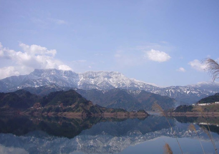 山腰的瓦屋山大水庫湖面積15平方公里,庫容6億立方米,相當于兩個3億立方米的黑龍灘水庫。壩高為143米,水很深,一定要注意安全。有各類碼頭12座,游船一百多艘。坐在瓦屋山水庫邊的小桌旁長椅上喝茶,望著遠方白亮的湖水,別有一番滋味在心頭。