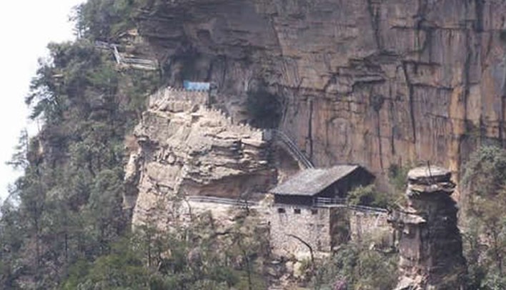海拔 1122米,清末自民國時(shí)則土匪盤踞于此,版權(quán)所有山東聊城聊之旅國際旅行社有限公司,轉(zhuǎn)載必究!留有27步石級(jí),寨上有孤寨懸梯、悍匪窟穴等殘跡。