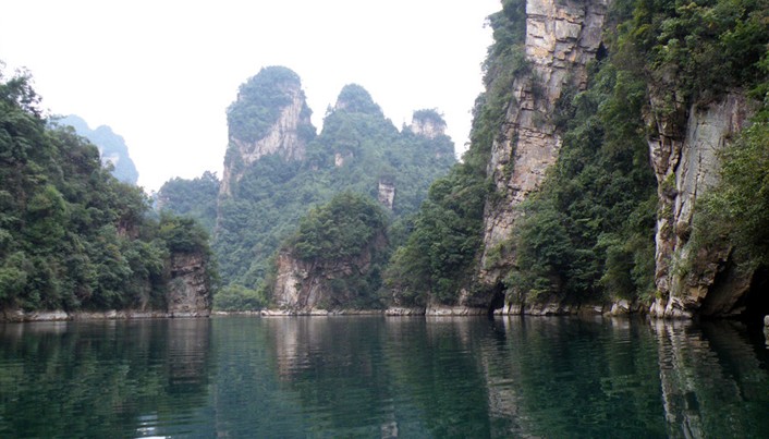 世界自然遺產(chǎn)------寶峰湖:被稱為“世界湖泊經(jīng)典”,地處張家界武陵源風(fēng)景名勝區(qū)的核心地帶,距天子山8公里,距武陵源區(qū)政府1.5公里,距黃龍洞8公里。寶峰湖風(fēng)景區(qū)集山水于一體,融民俗風(fēng)情于一身,尤以奇秀的高峽平湖絕景、“飛流直下三千尺”的寶峰飛瀑、神秘的深山古寺聞名。