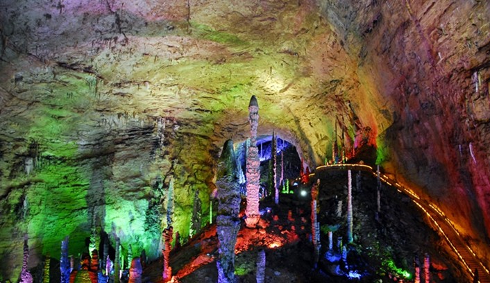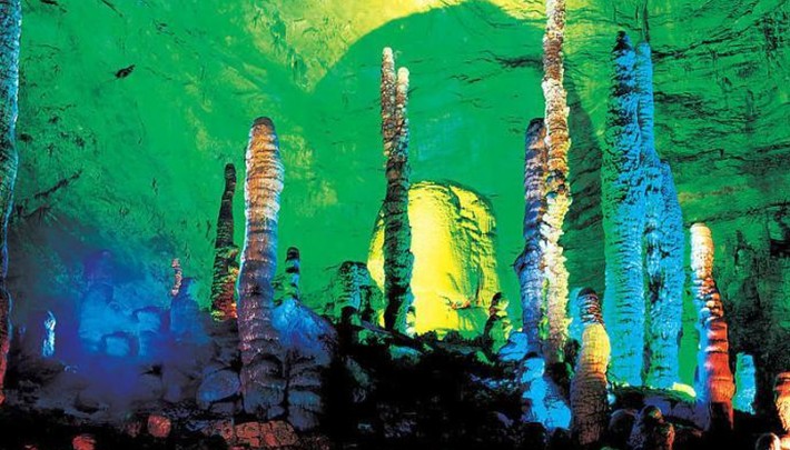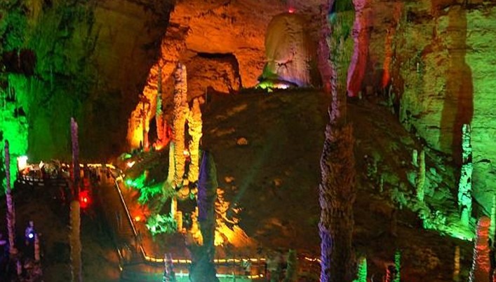 黃龍洞位于湖南省張家界市核心景區(qū)武陵源風(fēng)景名勝區(qū)內(nèi),屬典型的喀斯特巖溶地貌,因享有“世界溶洞奇觀”“世界溶洞全能冠軍”“中國最美旅游溶洞”等頂級(jí)榮譽(yù)而名震全球。黃龍洞以其龐大的立體結(jié)構(gòu)洞穴空間、豐富的溶洞景觀、水陸兼?zhèn)涞挠斡[觀光線路獨(dú)步天下。