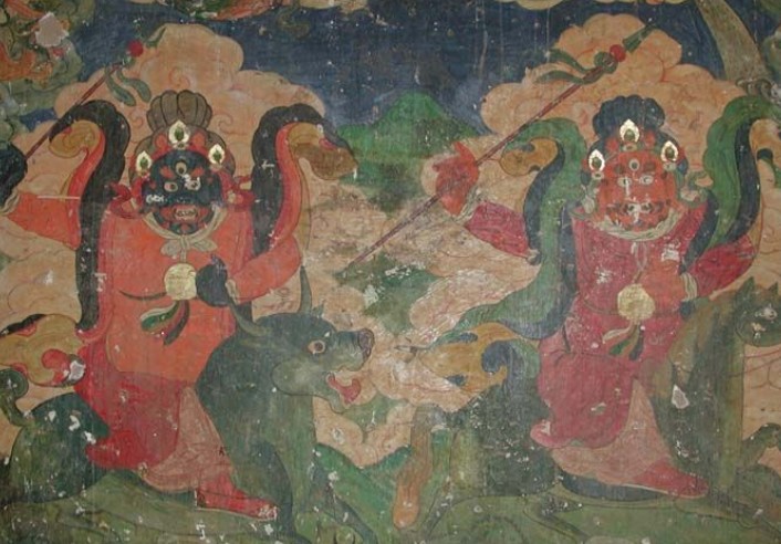 惡龍?zhí)稍谘蠢锘杳赃^去,三姐妹一看惡龍還有一個頭,知它不能死,就用各種神法治惡龍于死地,但這些法子都不頂用,三姐妹著了急,如果惡龍醒來,打到天宮去,我們姐妹就更吃罪不起了。正在這時,托塔天王巡天回宮交旨,路過這里,三姐妹趕緊迎了上去,說明事情根由,天王說:"惡龍作孽累累,罪刻萬死!它神通廣大,你們哪能是它的對手?我助你們一臂之力,你等需在惡龍的頭、腰、尾各筑一塔,便大功告成。"說完,默念咒語,吐三口神氣,那惡龍乖乖地翻了白。三姐妹謝過天王便忙于去筑塔。天王說:"一個時辰,必須在天鼓響之前筑完。"說罷駕起祥云回天宮交旨。