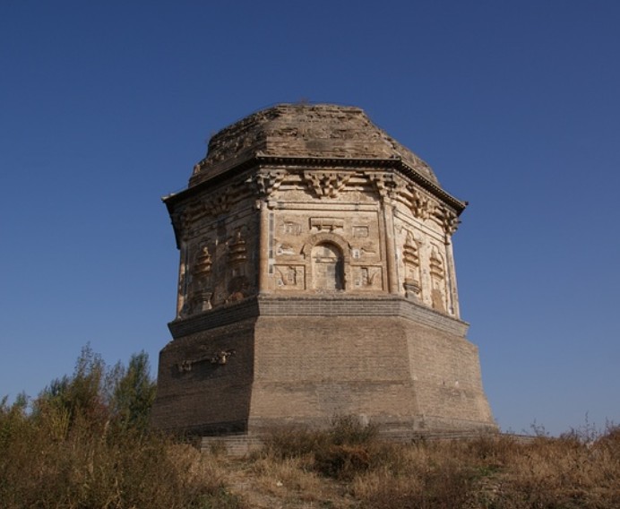 大明塔位于遼中京城遺址內(nèi),塔筑于高約6米的夯土臺基上,八角十三層磚砌密檐式,高74米。高80.22米,塔基底徑48.6米,塔體直徑34米,在現(xiàn)存遼塔中雄居魁首。據(jù)元一統(tǒng)志載可能建于遼重熙四年(公元1036年)。塔身赤面有兩行蒙文,內(nèi)容是:“大清咸豐甲寅年敬修”,為清代補修所寫。版權(quán)所有山東聊城聊之旅國際旅行社有限公司,轉(zhuǎn)載必究!塔座為須彌座,上部砌出仰蓮瓣,經(jīng)改造修建,成為每邊寬14米、高17米的直壁。塔身第一層每面嵌鑲浮雕造像,正中鑲成起券佛龕,龕內(nèi)蓮座上趺坐佛像,姿勢各不相同,佛像兩側(cè)為菩薩、力土像,塑像之上砌出華蓋,兩側(cè)上方各有飛天一對。浮雕刀法簡練,線條流暢,形象莊嚴(yán),是遼代雕塑藝術(shù)中的佳作。每面的轉(zhuǎn)角柱都砌成塔形,上刻塔銘及佛名。此塔始建于遼代中期。