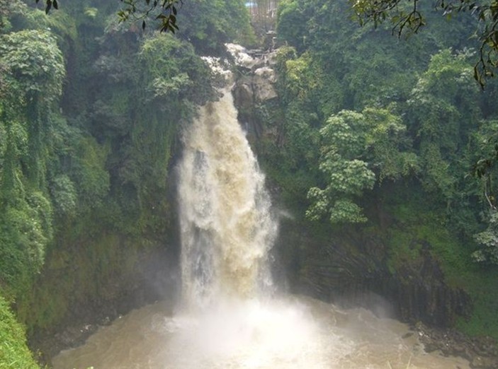 發(fā)源于騰沖縣東北部的大盈江,屬于伊洛瓦底江水系,沿途眾流匯合,水量漸豐。位于騰沖縣城以西1公里,此處四周是懸崖峭壁,大盈江水流經(jīng)此處,從30多米的高巖上跌落,響聲雷動(dòng),水花四濺,形成了“不用弓彈花自散”的壯麗景觀,據(jù)說在陽光下常現(xiàn)出七色彩虹,非常漂亮。大盈江從北向南貫穿騰沖壩子,在流經(jīng)云南騰沖縣城西1千米的地面時(shí),遇到1個(gè)巨大的斷層崖。