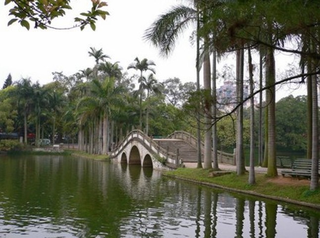 人民公園又稱白龍公園。面積50多萬平方米。圓內(nèi)有一約7萬平方米的白龍湖,湖水澄碧。據(jù)宋人王象之《興地記勝》載,宋名將狄青曾駐望仙坡,見坡下湖邊一群白羊頗似龍形。因此以白龍名此湖??梢姲埡呀?jīng)有上千年的歷史。湖岸翠竹掩映,垂柳搖曳。湖心有小島,島西的九曲橋和島北的三孔月橋?qū)u與湖岸相連。湖面的游艇,或藍(lán)天下競渡,或綠蔭徜徉,亦成一景。