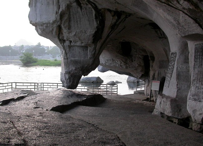 相傳古時(shí)有一老漁翁,在還珠洞拾得龍珠而惹怒海龍王,其興風(fēng)作浪,給百姓帶來(lái)災(zāi)害。后官府命老翁將龍珠歸還,方使天下太平,故此得名。洞內(nèi)玲瓏剔透,勾連曲暢,有唐人造像、宋代題刻100多件,其中宋代大書(shū)畫(huà)家米芾的題名、自畫(huà)像和詩(shī)人范成大的題詩(shī)堪稱珍品。洞的東面豁然開(kāi)朗,洞口下面即是深不見(jiàn)底、碧波幽水的伏波潭。臨江有一石柱下垂,上粗下細(xì),底端有一寸多的空隙與地面相接,似被劍劈而開(kāi),堪稱鬼斧神工。傳說(shuō)是伏波將軍試劍所致,故稱試劍石。有好奇的游人,都曾伏在試劍石下方的大石塊上,伸手摸一摸這奇妙的縫隙。 千佛洞從試劍石旁沿石階盤(pán)桓而上,可達(dá)千佛洞,內(nèi)有唐代摩崖造像239尊,加上僅有斧鑿痕跡尚未成形的共有400尊之多,成為唐代崇尚佛法,佛教盛極一時(shí)的標(biāo)志,具有很高的鑒賞和研究?jī)r(jià)值。