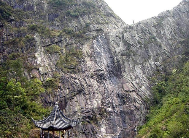 試劍石 位于洞中臨江的東口,“懸空而下,狀若浮柱,去地一線不合”。傳說(shuō)伏波將軍馬援南征時(shí)與作亂犯境者在還珠洞中談判,談至僵局,馬將軍拔劍而起,劍光一閃,竟將巨大的石柱貼地削去寸余,對(duì)方為之色變,立刻答應(yīng)退兵。“退多遠(yuǎn)?”“退一箭之地!”馬援轎釘截鐵地回答。對(duì)方自以為得計(jì),二話沒(méi)說(shuō)便表示同意,并親筆在箭桿上寫(xiě)下“箭落為界”的字樣,伏波將軍登上伏波山,只見(jiàn)他弓如滿月,箭似流星,一箭射穿了三座山,直飛到作亂犯境者出發(fā)的地界才落下,對(duì)方見(jiàn)將軍如此神勇,只好悻悻地退回了他們的老巢。其實(shí),那條所謂的劍痕縫隙原來(lái)是石灰?guī)r的巖層,水流沿著這個(gè)層面的裂隙沖刷溶蝕出一條縫隙,整個(gè)試劍石只是一根溶蝕殘柱,如今它已無(wú)水的溶蝕作用,無(wú)法分解碳酸鹽而產(chǎn)生新的沉淀,失去了繼續(xù)生長(zhǎng)的條件和環(huán)境,所以它將永遠(yuǎn)都是一塊離地懸空的奇石。
