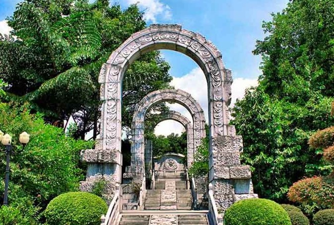 南園突出一種人文感覺。在虞帝廟的遺址上,公園又重新恢復(fù)新建了虞帝廟,其背后即為虞山,渾然天成;五福塔(以中國傳統(tǒng)吉語“五福臨門”命名)金碧輝煌,塔內(nèi)設(shè)有“平安鐘”以祈福國泰民安;“九重天”是由三個(gè)大理石雕鑿而成,給人以平步青云之感;集雅園收集了園內(nèi)的奇石珍品供游人觀賞;“曲水流觴”妙趣橫生;怡沁園巧奪天工的假山疊石栩栩如生;還有回音壁,兩人世界、智者、聞韶樓、南薰亭等眾多景點(diǎn)。