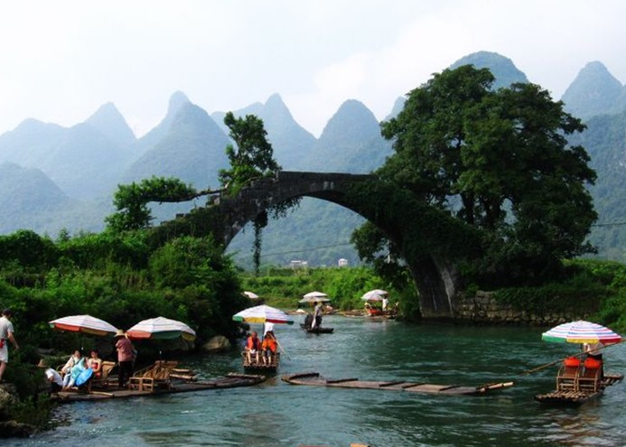 4、也可以在陽(yáng)朔汽車站坐開(kāi)往金寶的中巴車,中途在金龍橋下車,從金龍橋可開(kāi)始漂流。