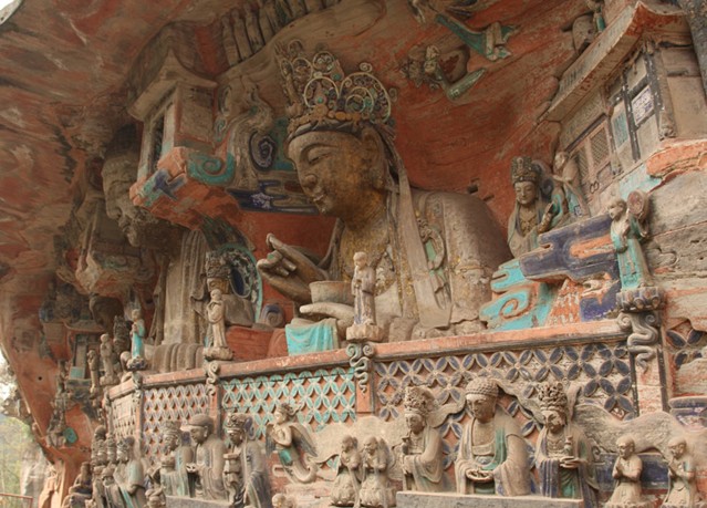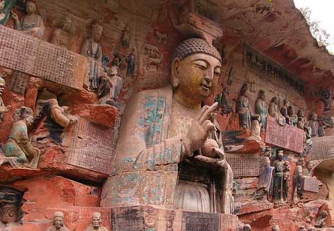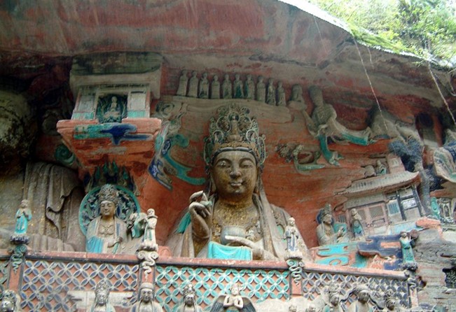 重慶市的大足石刻以其規(guī)模宏大、雕刻精美、題材多樣、內(nèi)涵豐富和保存完整而著稱于世。它集中國(guó)佛教、道教、儒家“三教”造像藝術(shù)的精華,以鮮明的民族化和生活化特色,成為中國(guó)石窟藝術(shù)中一顆璀璨的明珠。它以大量的實(shí)物形象和文字史料,從不同側(cè)面展示了9世紀(jì)末至13世紀(jì)中葉中國(guó)石刻藝術(shù)的風(fēng)格和民間宗教信仰的發(fā)展變化,對(duì)中國(guó)石刻藝術(shù)的創(chuàng)新與發(fā)展做出了重要貢獻(xiàn),具有前代石窟不可替代的歷史、藝術(shù)和科學(xué)價(jià)值。許多歐洲人、尤其是法國(guó)人,對(duì)大足石刻寵愛倍加。