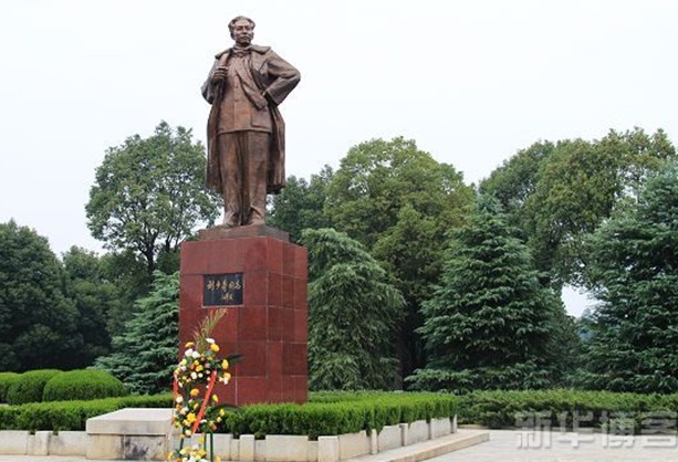 由中國(guó)美術(shù)館館長(zhǎng)、著名雕塑家劉開(kāi)渠及中國(guó)軍事博物館雕塑家程允賢設(shè)計(jì)的劉少奇銅像建于紀(jì)念館西南約200米的山包上,為站立式全身像,底座高3.1米,像高4米,總高7.1米,上鐫陳云題詞:“向堅(jiān)定的共產(chǎn)主義戰(zhàn)士劉少奇同志學(xué)習(xí)”。