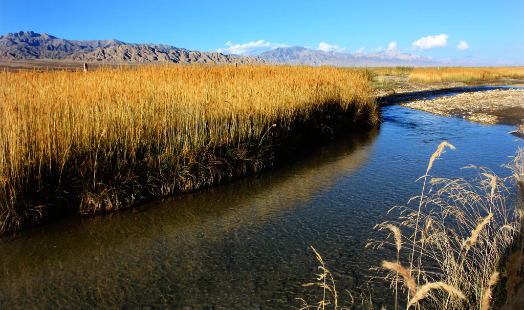 巴音河,蒙古語,意為“幸福的河”。巴音河縱貫德令哈市區(qū),是境內(nèi)最大的河流,被稱之為德令哈市的“母親河”。她源出祁連山系哈爾拜山南坡,流經(jīng)澤令溝、尕海、戈壁等地,最后注入克魯克湖,全程200余公里。她無私地養(yǎng)育著世代居住在這里的各族人民,正是她的存在才使這座戈壁城市有了活力。站在柏樹山上俯視全市,城在林中,水在林間,巴音河猶如森林中的一條河流,而人也仿佛是置身于林與水之間的精靈。