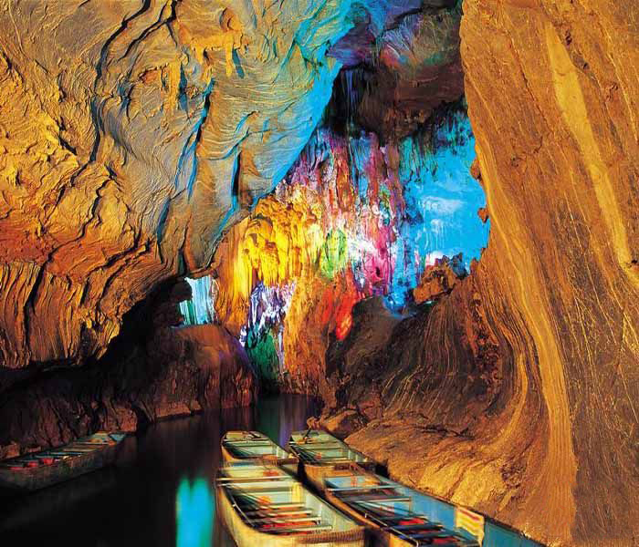 連州地下河位于歷史文化古城連州以北26公里處的東陂鎮(zhèn)大洞村境內(nèi),是一處巧奪天工的亞熱帶喀斯特地貌的典型巨型天然石灰?guī)r溶洞,因?yàn)槎纯趶V闊,仿佛一個大嘴巴,所以當(dāng)?shù)鼐用穹Q之為大口巖版權(quán)所有聊城聊之旅旅行社有限公司,轉(zhuǎn)載必究!。1986年初探,1988年正式對外開放。它以其神秘瑰麗的石鐘乳及洞穴暗河而馳名中外。連州石鐘乳自古出名,據(jù)《連州志》記載,唐代文學(xué)家劉禹錫815年復(fù)出任連州刺史時在《連州刺史廳壁記》中贊美連州的石鐘乳:"山秀而高、靈液漉,故石鐘乳為天下甲,歲貢三百珠。"歷代地方官都把石鐘乳作為進(jìn)貢朝廷的物品。