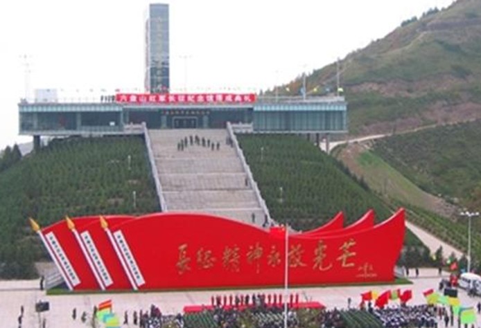 六盤(pán)山紅軍長(zhǎng)征紀(jì)念館位于寧夏固原市境內(nèi)的六盤(pán)山主峰之上,由1986年所建的六盤(pán)山紅軍長(zhǎng)征紀(jì)念亭改擴(kuò)建而成,2005年9月18日落成,總投資4000多萬(wàn)元,占地面積5公頃,建筑面積2萬(wàn)平方米,整體建筑由紀(jì)念館、紀(jì)念碑、紀(jì)念廣場(chǎng)(迎壁墻三面紅旗、銅鑄紅軍群雕)、紀(jì)念亭、吟詩(shī)臺(tái)等五部分組成。