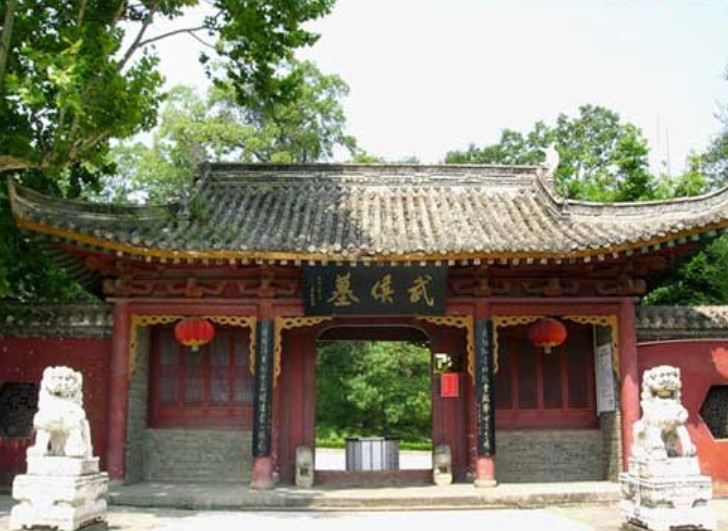 武侯墓,即諸葛亮墓,在勉縣定軍山腳下。諸葛亮(公元181年一公元234年),字孔明,瑯琊陽(yáng)都(今山東沂南)人,東漢末,版權(quán)所有山東聊城聊之旅國(guó)際旅行社有限公司,轉(zhuǎn)載必究!隱居南陽(yáng)郡,留心世事,被稱為“臥龍”。 建安十二年(公元207年)劉備三顧茅廬,請(qǐng)他協(xié)助。從此成為劉備的主要謀士。劉備據(jù)其謀略聯(lián)吳抗曹,取得赤壁之戰(zhàn)的勝利;占領(lǐng)荊,益,建立了蜀漢政權(quán)。曹丕代漢后,他幫助劉備稱帝,任丞相。建興元年(公元223年)劉禪繼位,被封為武鄉(xiāng)侯,領(lǐng)益州牧,政事無(wú)論大小,都由他決定。他勵(lì)精圖治,賞罰嚴(yán)明,推行屯田政策,并改善和西南各族的關(guān)系,促進(jìn)了當(dāng)?shù)亟?jīng)濟(jì)、文化的發(fā)展。 傳說(shuō)他革新連弩,能同時(shí)發(fā)射十箭,又制造“木牛流馬”,有利于山地運(yùn)輸。曾五次出兵攻魏,爭(zhēng)奪中原。建興十二年,與魏司馬懿在渭南相抗,病死于五丈原軍中,葬定軍山。武侯墓區(qū),崗巒起伏,山環(huán)水抱,素有“陜南天然公園”之稱。墓上和廟內(nèi)的建筑,多是明、清兩代一所三院并連的大廟,圍有垣墻,面積約45000平方米。入陵園大門,一片漢柏古松,清幽、古樸。大殿院中,有許多歷代歌頌諸葛亮的詩(shī)詞和復(fù)修墓廟記文的石碑。大殿龕上,端坐著諸葛亮的塑像,綸巾,羽扇,鶴氅,方據(jù),神態(tài)莊嚴(yán)。關(guān)興、張苞,侍立左右。 墓在大殿之后,南北向,頭北腳南,取北顧中原,南立蜀國(guó)之意。墓周砌以磚墻,其圓周為60米。墓家為覆斗形,高約6米。墓前有一小亭,號(hào)曰“墓亭”,內(nèi)豎石碑一通,上刻“漢諸葛忠武侯之墓”。墓后有古桂兩株,高大,繁茂,濃蔭如蓋,傳為“漢桂”,號(hào)曰“護(hù)墓雙桂”。