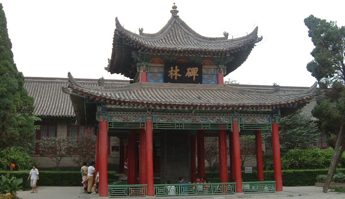 碑林博物館位于西安市文昌門內(nèi)三學(xué)街15號,原為陜西省博物館,建于1944年,它是在具有900多年歷史的“西安碑林”基礎(chǔ)上,利用西安孔廟古建筑群擴(kuò)建而成的一座以收藏、研究和陳列歷代碑石、墓志及時刻造像為主的藝術(shù)博物館。館區(qū)由孔廟、碑林、石刻藝術(shù)室三部分組成,現(xiàn)有館藏文物11000余件,11個展室,陳列面積4900平方米。博物館本身即為孔廟舊址,其建置可追溯到北宋末年。照壁、牌坊、泮池、欞星門、華表、戟門、碑亭、兩廡等明清建筑保存至今,并遵循著孔廟固有的建筑格局,組成了一個綠樹掩映、古樸典雅的庭院式建筑群。
