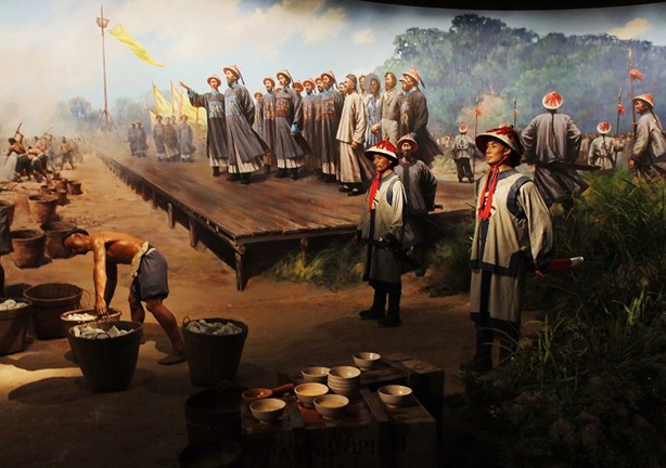 該館的陳列形式突破了傳統(tǒng)的陳列手法,注意把文物放在一定的環(huán)境氣氛中去展出,采取畫物結(jié)合,實物與輔助展品結(jié)合,采用場景、沙盤、聲光電模型、尋像放映等多種手段,使陳列形式生動、形象。如該館為了反映當(dāng)年林則徐、關(guān)天培用木排鐵鏈封鎖虎門海口的情形,把征集來的木錨及一艘早期的劃船送上展廳,并復(fù)制了大木排鐵鏈,與長33米,高2.8 米的虎門??谛蝿荼尘爱嬒嘟Y(jié)合,版權(quán)所有山東聊城聊之旅國際旅行社有限公司,轉(zhuǎn)載必究!構(gòu)成了一幅氣勢磅礴,頗為壯觀的場景,形象地再現(xiàn)了當(dāng)年用木排鐵鏈封鎖虎門??诘男蝿?,大大增強了展覽的效果。