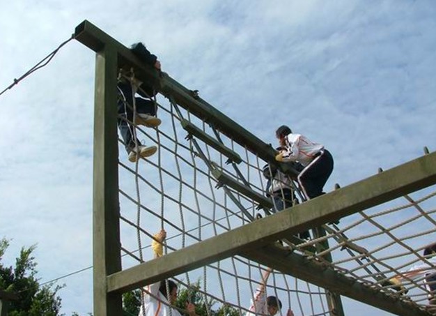 此項(xiàng)目由6根橫碼、軟梯、高空平網(wǎng)、高空豎網(wǎng)、空中高桿等部件組合而成。需要極佳的團(tuán)隊(duì)協(xié)作精神,要求全體參訓(xùn)人員必須互相支持、相互配合,相互幫助及互相鼓勵(lì),勇往直前定能出色完成此項(xiàng)目?!?/p>