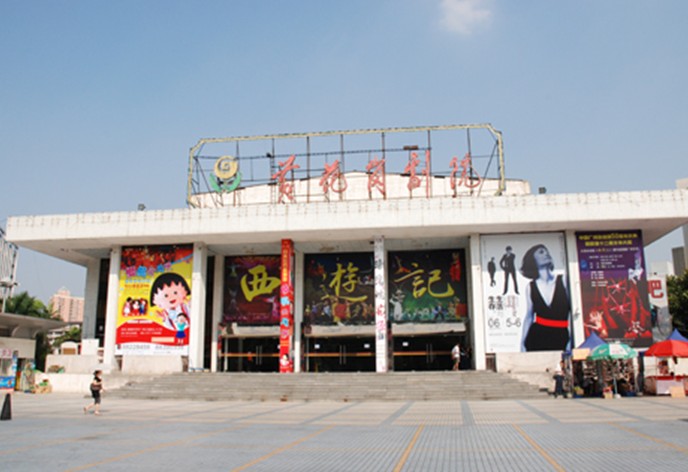 黃花崗劇院1983年由廣州軍區(qū)空軍投資興建,位于先烈中路,因劇院靠近黃花崗公園而得名。占地1.1萬平方米,建筑面積7500平方米。有座位1723個,具有現代化音響、燈光和中央空調設備,后臺還有兩層化妝室,可供100個演員同時使用。裝備有高度固定式立體放映機和立體聲學環(huán)回音響系統(tǒng),是一座既能容納大型劇團演出,又可放映立體聲電影,設計新穎、設備先進的現代化綜合型影劇院。