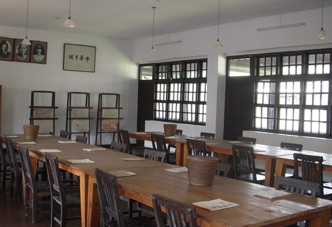 校本部下設(shè)政治、教授、訓(xùn)練等六部。其中政治部掌管全校政治教育、黨務(wù)和宣傳。我們敬愛的周總理當(dāng)年是黃埔第一期的第三位政治部主任。最初兩位是戴季陶和邵元沖.因?yàn)樗麄兌紱]有把工作做好,黨代表廖仲愷決定邀請(qǐng)周恩來擔(dān)任這項(xiàng)工作。從此,政治部面貌煥然一新,生氣勃勃。設(shè)立黨代表和政治部是新型軍官學(xué)校的重要標(biāo)志之一。毛澤東同志后來也曾充分肯定軍校的這種制度,他說:那時(shí)軍隊(duì)設(shè)立黨代表、政治部,這種制度是中國歷史上沒有的。靠了這種制度,使軍校面目一新。1927年以后的紅軍,至今日的八路軍,都是繼承這種制度而發(fā)展的。聶榮臻元帥當(dāng)年曾在政治部擔(dān)任秘書和教官工作。對(duì)面的職員宿舍,是教官們休息的地方。