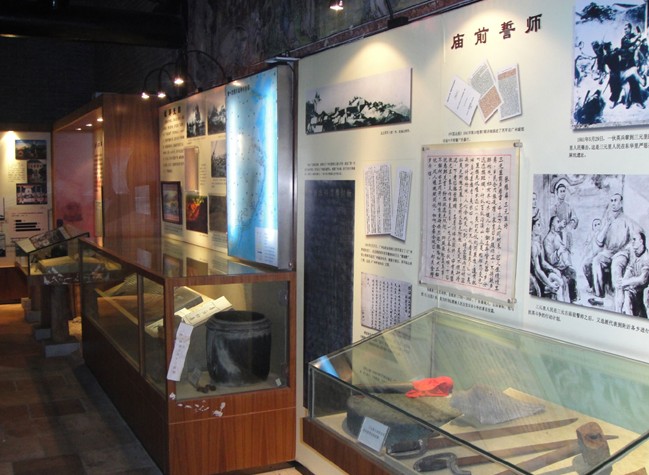 紀念館內(nèi)的展品主要有沙盤、七星旗、武器和戰(zhàn)利品。沙盤是當年三元里及附近103鄉(xiāng)農(nóng)民抗擊英國侵略者斗爭的示意模型。它重現(xiàn)了當年鄉(xiāng)民大敗英軍的場面與殺聲震天的情景,使我們?nèi)缗R其境,如聞其聲。這里“黑底牙邊三連星旗”曾是三元里抗英斗爭的指揮旗,英軍打仗忌黑旗,一見到這面旗就失色驚呼:“打死仗者來了!”頓時落魄驚魂,斗志盡失?,F(xiàn)在北京中國革命歷史博物館內(nèi)展出的三星戰(zhàn)旗是復制品,它和陳列在這里的大刀、長矛、繳獲的英軍軍服,以及陳列在大門兩邊的4門古炮,版權所有山東聊城聊之旅國際旅行社有限公司,轉(zhuǎn)載必究!被一代代保存下來,作為愛國主義教育的生動教材,讓后人永遠記取這段光輝的一個歷史。