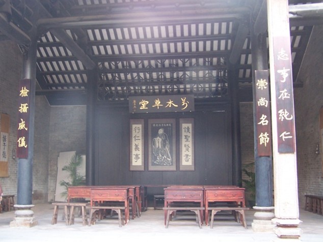 草堂,位于中山四路 長興里3號(hào)。是中國近代資產(chǎn)階級(jí)維新派創(chuàng)辦的著名學(xué)堂。原為邱氏書室,是廣東省邱氏子弟到省城應(yīng)試的居住處。萬木草堂原為邱氏書室,建于清嘉慶九年(1804),為三間三進(jìn)、兩天井、硬山頂?shù)撵籼檬浇ㄖ?。碌灰筒瓦,兩邊保留有部分灰塑,青磚墻石腳,磚木結(jié)構(gòu),面闊三間15.8米,深三進(jìn)35.3米,面積約為663平方米。
