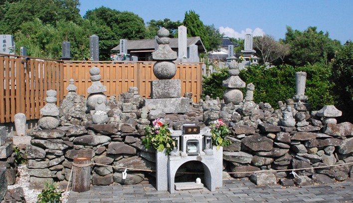 在日本山口縣大津郡油谷町的二尊院,有一塊規(guī)模不大的墓地。位于墓地的最前面,靠近大海處是“華僑”楊貴妃的墓地,是由亂石砌成的一個(gè)十幾平方米的平臺(tái)。臺(tái)上有5座石塔,被日本人稱為“五輪塔”,列為國家保護(hù)文物。這里既無規(guī)模宏大的廟宇,也無墓碑之類的明顯標(biāo)志,只有墓前插著的幾束鮮花,證明不斷有人前來掃墓。據(jù)說朝拜楊貴妃墓之后,可生個(gè)漂亮可愛的孩子。墓前有兩塊年代較新的木板,一是關(guān)于楊貴妃之墓的介紹,一是關(guān)于“五輪塔”的說明。
