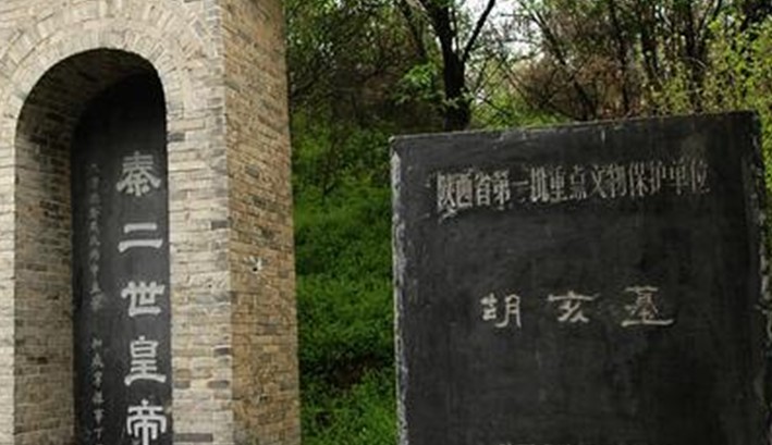大殿的后面就是胡亥的陵墓,墓為土筑圓形,封土堆直徑二十五米,高五米,直徑25米。墓北有石碑一座,高三米,寬九十八公分,厚二十八公分。碑面陰刻“秦二世皇帝陵”六個(gè)隸書大字,為清乾隆四十一年(公元1776年)陜西巡撫畢沅所立。碑后陰刻《夜役說(shuō)》,為生員周新命于嘉慶十年所書。 1956年8月6日被陜西省人民委員會(huì)列為第一批重點(diǎn)文物保護(hù)單位?,F(xiàn)已辟為秦二世皇帝陵遺址公園。