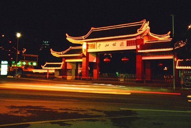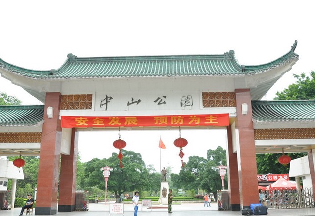 韶關市中山公園位于市中心區(qū),湞江、武江、北江交匯處,總面積約12公頃。公園以中心大道為主軸線,形成了近三萬平方米開闊的公園城市廣場。主軸線上建有古典大屋頂琉璃瓦大門,孫中山雕像,音樂噴泉及文藝演出舞臺等建筑。廣場最高游人容量可達2萬多人。公園沿周邊規(guī)劃了兒童活動區(qū)、安靜休息區(qū)、盆景園、竹園以及水景區(qū)五個小區(qū)。