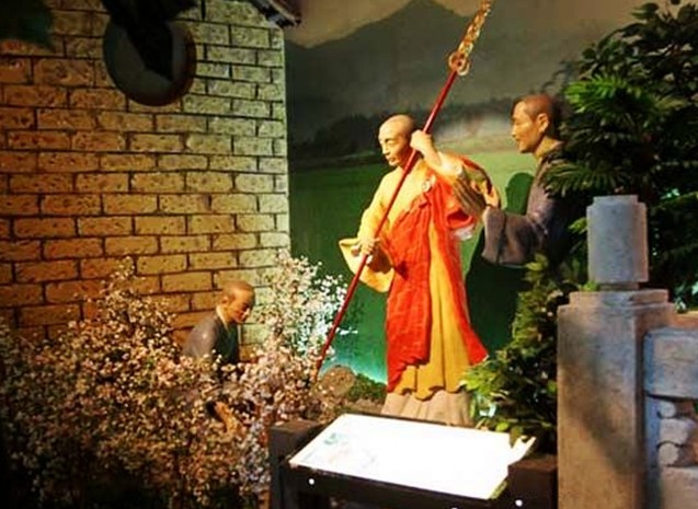《六祖惠能生平故事陳列》陳列形式設計打破以往圖片加實物的手段,全部用場景來制作,真實、形象地展示六祖生平的傳奇故事,使陳列具有地方性、知識性和趣味性。共制作了場景18個,玻璃鋼彩塑人物圓雕48尊,大型浮雕一組。整個陳列以背景音樂和燈光映襯營造氣氛,取得很好的展示效果。 六祖惠能(公元638—713年)是中國佛教史上有重要影響的思想家和開一代新風的禪宗大師。惠能創(chuàng)立的中國特色的佛教,成為影響中國佛教長達千多年的中國禪宗的真正創(chuàng)始人。六祖創(chuàng)立的南宗禪不但成為中國佛教影響最大、傳播最廣的主流宗教,而且流傳海外,遠播歐美。