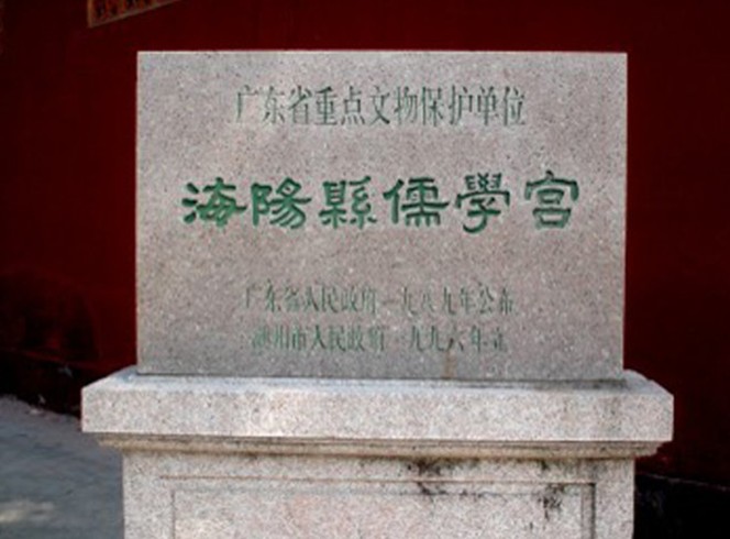 海陽(yáng)縣儒學(xué)宮位于潮州城區(qū)昌黎路和文星路交界處。俗稱紅學(xué)、學(xué)宮。始建于南宋紹興年間,景炎三年(1278),后毀于火。明洪武二年(1369)重建大成殿,雖歷經(jīng)滄桑,其主要建筑大成殿仍完整地保留了明初粵東地區(qū)殿堂建筑的風(fēng)貌特點(diǎn),以后歷代屢有增建,始成規(guī)模宏大的建筑群。