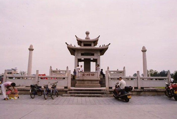 祭鱷臺原為古鱷渡口。相傳唐代韓愈刺潮時曾于此處設(shè)壇祭鱷,撰《鱷魚文》,故名。臺前大江,于秋高云淡之際,一面風可駛?cè)娣?,因而稱“鱷渡秋風”,列為“潮州八景”之一。1987年,在原址修建鱷渡秋風亭和祭鱷臺。鱷渡秋風亭為金石結(jié)構(gòu),四柱四角雙重檐,分兩級層臺,上亭下臺,四周有石欄環(huán)護回廊欄桿,端莊且典雅。