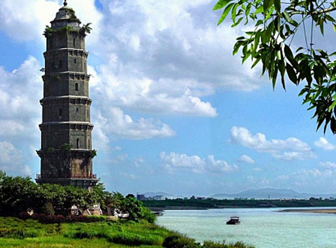鳳凰塔獨特之風采,引起歷代名士的贊美:“船如梭,橫織江中綿繡;塔作筆,仰作天下文章。” 正如鄭蘭枝所描寫的: