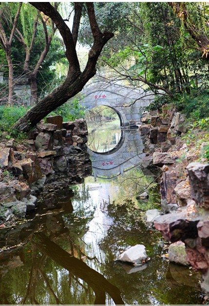 園中既然是自然的水道,那么就有些地方是互不通連的,當(dāng)年園主人在這里挖土相通,名小浯溪,就近推積,遍栽翠竹,形成障景,使之竹影浯溪,名“妙隱香林”,富有禪意。