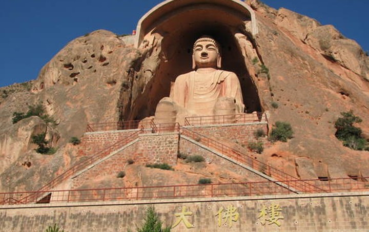 最為引人注目的,是須彌山入口處高達(dá)20.6米的彌勒大座佛。它高坐于唐代大中三年(849年)開(kāi)鑿的一個(gè)馬蹄形石窟內(nèi),身披袈裟,頭流螺髻;臉如滿月,雙耳垂肩,神情莊重,十分壯觀。這座大佛比云崗石窟中最大的十九窟坐佛和龍門石窟的奉先寺盧舍那佛還高,是全國(guó)最大的造像之一。走近觀察,只見(jiàn)那佛高大魁梧,足有五六層樓高,耳朵有兩人高,眼窩直徑1米多,佛雖大,但雕刻卻十分的精致。專家說(shuō),這完全是一塊完整的罕見(jiàn)巨石雕琢出來(lái)的,充分顯示了中國(guó)古代工匠的高超技藝和雄偉氣魄。唐代統(tǒng)治者提倡佛教,武則天曾下令全國(guó)各州建大佛寺,造大佛像。有學(xué)者推測(cè),這等大佛可能是在武則天掀起的崇拜佛的浪潮中建造的。站在大佛的腳下,眼前似有云霧繚繞,耳旁隱聽(tīng)山泉叮咚,山石霧松組成大西北黃土高原上獨(dú)特的山水畫卷