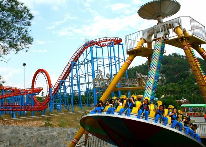 鳥屋漂流、過山車、東莞最大的動物園、驚險歷奇、廣東第一大100米龍宮、大擺錘、摩天環(huán)車、颶風(fēng)飛椅、神州飛碟、豪華無天網(wǎng)碰碰車、豪華轉(zhuǎn)馬、太空漫步、廣東最大的哥倫布活鬼船、射箭場、炮兵基地、海盜船、激戰(zhàn)鯊魚島每個項目限玩一次以及景區(qū)各景點免費觀光。