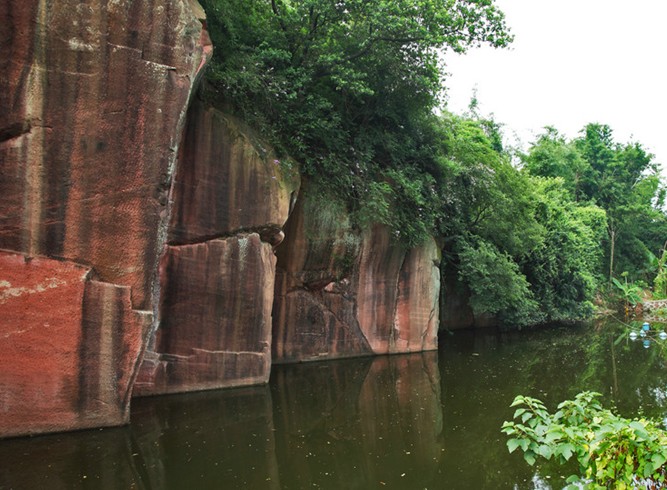 東莞市位于珠江三角洲東南部,穗港經(jīng)濟(jì)走廊中點,東南與深圳、惠州毗 連,西北隔江與廣州相望,南臨伶仃洋,是我國南方各地與太平洋沿岸國家地區(qū)往來的主要通道。燕嶺原是東莞這里明清時期的古采石場,有些象廣東最著名的蓮花山的形成原因,樣子也很象。石料為水成巖紅石,經(jīng)數(shù)百年開采殘留下來許多的石壁、石柱,呈暗粉紅色,當(dāng)?shù)厝朔Q之為"十八間房"。