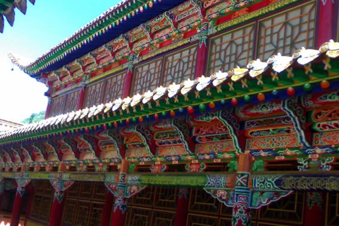 可是到了雍正二年,因?yàn)閰⑴c了羅卜藏丹津反清叛亂,宏偉的寺院竟然被官軍付之一炬,寺內(nèi)僧人死走逃亡。盡管在雍正十年,皇帝為了重當(dāng)?shù)乩?dāng)?shù)乩锝潭囊庠?,版?quán)所有山東聊城聊之旅國(guó)際旅行社有限公司,轉(zhuǎn)載必究!欽命宣修寺院,并賜額“佑寧寺”。但這座可與任何恢宏寺院比肩的佛教圣寺再也沒(méi)有恢復(fù)年的規(guī)模。在空前絕后的“文革”中,這座古寺再次被焚毀,這一次比雍正年間那次兵火更加徹底,寺內(nèi)文物幾乎蕩然無(wú)存?,F(xiàn)在,經(jīng)過(guò)小規(guī)模修復(fù)的寺院只剩下稀稀落落的數(shù)十間院落和并不能稱為宏偉的幾座經(jīng)堂散處于山谷間,在北山林場(chǎng)的映襯下自在場(chǎng)然,似乎依然在回味著數(shù)百年來(lái)的那兩場(chǎng)令人心酸的大火所帶來(lái)的凄涼悲慘。