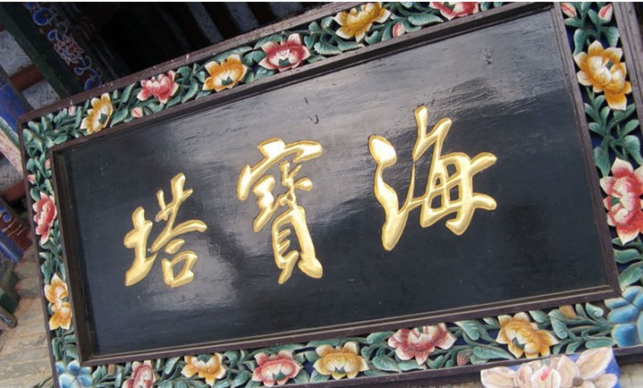 高聳在大佛殿和韋馱殿之中的海寶塔,是寺內(nèi)的主體建筑,又名“黑寶塔”,俗稱“北塔”。這是一座方形九層十一級樓閣式磚塔,通高 53.9米。塔建在一處方形寬闊的臺基地上,臺高5.7米,邊長19.7米。臺上四周有青磚砌花墻,東面正中有石階可以登臨塔座門。塔身平面呈方形,四壁出軒,每層四面設(shè)券門,均向外略有突出,構(gòu)成鮮明的十二角形。塔身內(nèi)為上下相通的方形空間,各層之間以木板相隔,沿木梯可登至頂層。塔身四面轉(zhuǎn)角處均懸有風(fēng)鈴,風(fēng)吹鈴響,更覺寧靜悠揚(yáng)。塔上端為磚砌四角攢尖頂,頂上置方體桃形綠色琉璃塔剎。海寶塔建筑風(fēng)格獨(dú)特,方形的塔身,四面的券門,眾多的棱角,四角的尖頂,為中國古塔所罕見,被視為中國古代建筑的杰作。